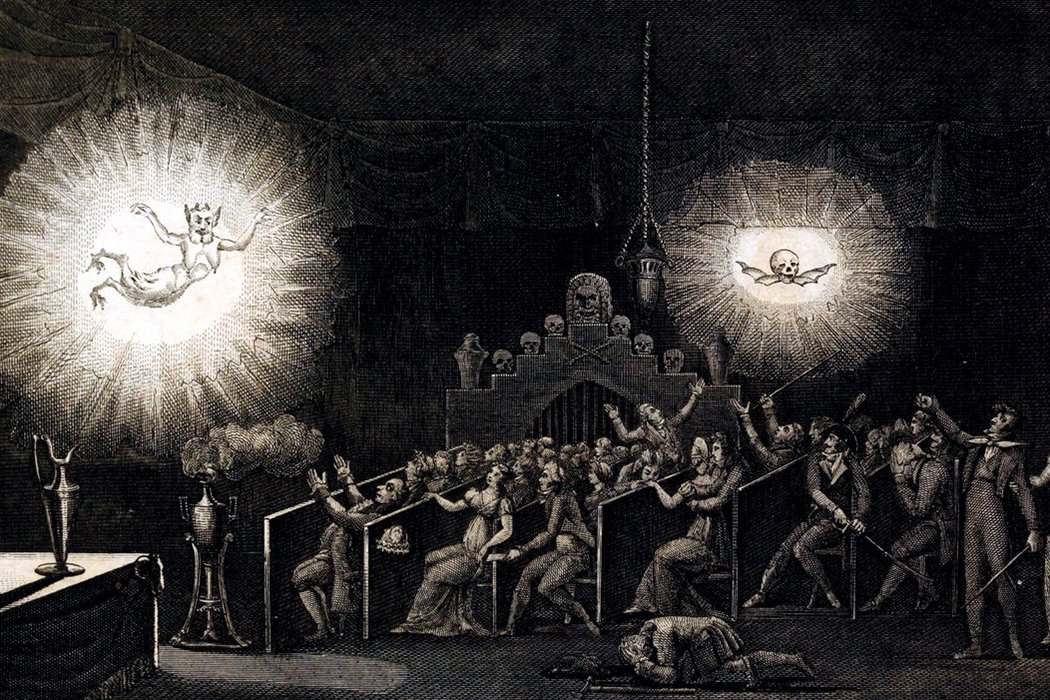그리스어로 유령, 프랑스어로 fantasme 즉, 유령이나 환상, 판타지, fantasy를 뜻하는 단어가 어원입니다. Phantasmagoria라는 단어를 쪼개어보면 유령이라는 뜻의 phantom과 광장이라는 뜻의 agora가 보이죠? 어원은 "공공장소에서 유령을 이야기하다"는 뜻이 있는데요.