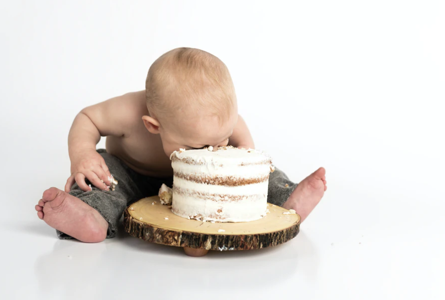 아기처럼 얼굴이나 입에 음식을 가득 밀어